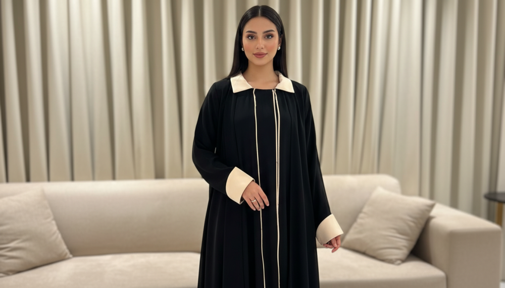 • عبايات واسعه سوداء مع تداخلات لونية دقيقة تضفي لمسة فنية عصرية على العباية.